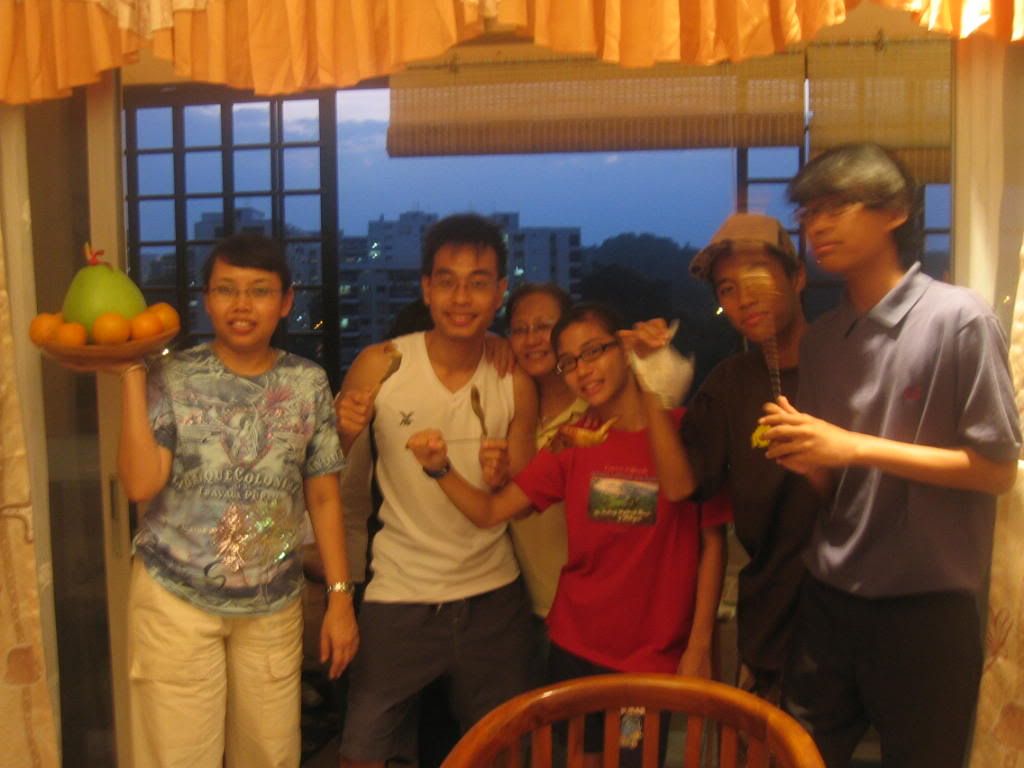 Today was kindda boring. Had to help out with my sister's room coz she's 'renovating' it. Hmmm...yesterday had BBQ at my cousin's house. Ate alot over there. Took alot of pictures. They had the barbecue thingy on the balcony. As it was on the 1oth floor, it was quite okay for barbecuing. Haha. Watched white chicks over there and laughed like we never laughed before. Whahahaha!! Went home aroun 11pm. Woo. Don't know what to write anymore seh. Hmm..just look at some of the pics we took k. Hehehe. Tata~!!